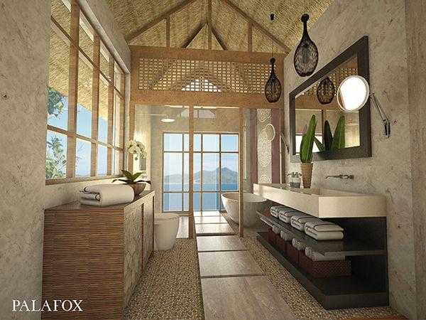 An atmosphere of subtle elegance was created with intricate wooden furniture pieces complementing the overall minimalist style of each suite. Attention to detail and symmetry was given to the layout of each villa. Colors range from white to the delicate shades of beige to create a romantic atmosphere that doesn’t draw the guest’s attention away from the island’s tropical spectacular views and lush environment. In order to blend in with each structure’s site, each villa is given a distinct color palette.