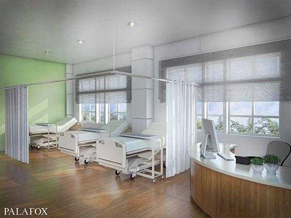 The major elements for design inspiration used here are air and earth. Wooden parquets, furniture, walls, and dividers contrast well with the sterile white color of the top half of the hospital rooms, clinics and common areas.