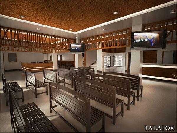 The modern Eye Center design for the Tzu Chi Foundation is simple, clean, with subtle architectural elements and accents that hint on the Foundation’s spiritual teachings seen in the building’s interiors. The rectangular building facade, only hints on its Buddhist roots through its entryway, where its roof takes on the form of the Buddhist temple roof design.